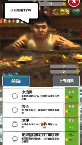 3、去小卖部看看,那里有各种各样的角色可以挑选,像愣子、坤坤还有小鸡舞之类的都有;