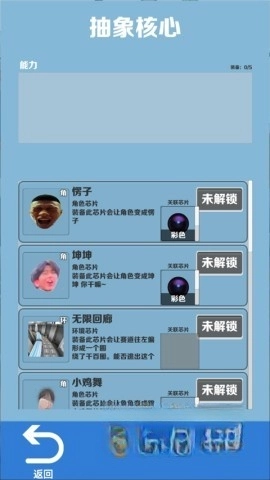 1、启动游戏后,点击抽象核心,开启角色解锁的探索之旅;