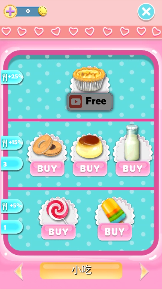 5、点击加号按钮,挑选女朋友想吃的食物,把美食拖动到女友面前,借此增进和女友的感情。