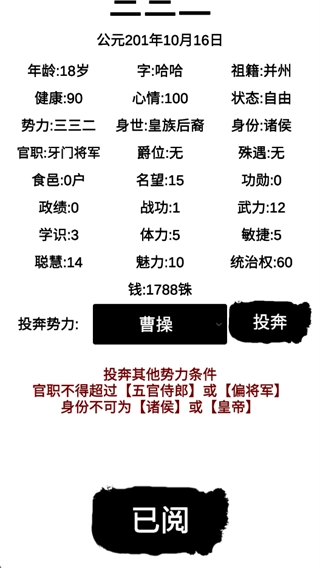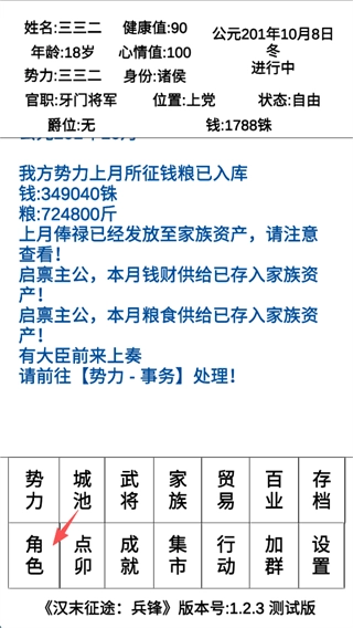 4、势力的钱和自己的钱性质不同,二者互不影响。只要有钱,就能去游说武将了。