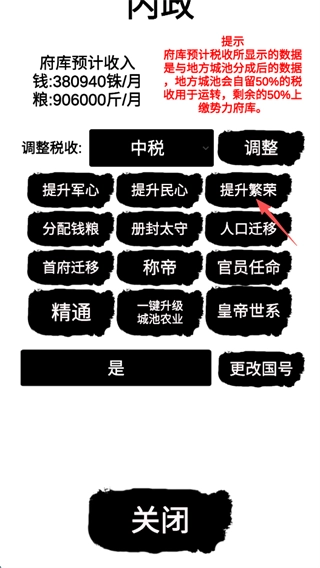 8、其中核心目标是提升己方势力的繁荣度,这能增加每月的收入,而游戏里绝大多数行动都得消耗资金。