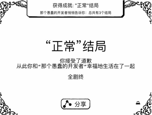 2、正常结局:你接受了道歉,从此和那个“愚蠢的开发者”幸福地生活在了一起。