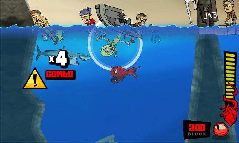 2.玩家需要操控食人鱼跃出水面攻击渔船上的渔民,把他们拖进水里吃掉,与此同时还要避开鲨鱼这类大型掠食者的危险。