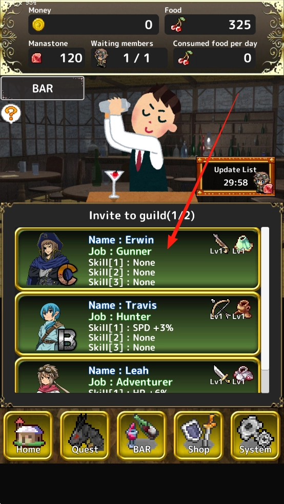 1、公会管理操作:点击界面按钮即可完成冒险者招募、任务派遣和建筑升级,滑动屏幕能够查看资源的收支情况以及公会成员的状态,整个操作过程简洁又直观。