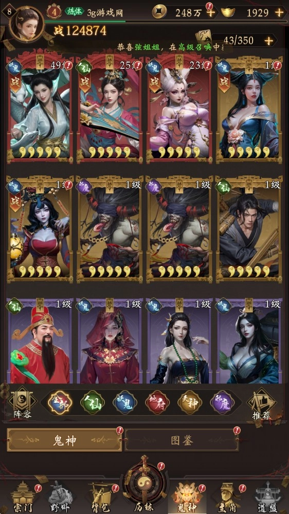 5、招募到新伙伴后,进入鬼神界面,就能在这里查看自己的伙伴了。