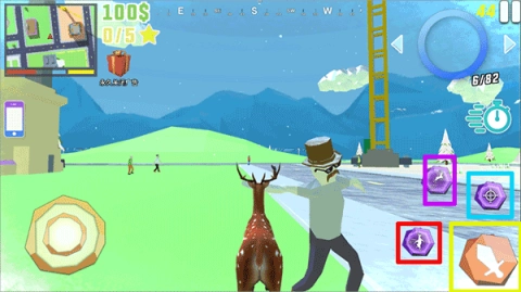 3、留意操作界面上的远程攻击、近战攻击、跳跃与瞄准功能,这些会帮你达成所有搞破坏的任务。