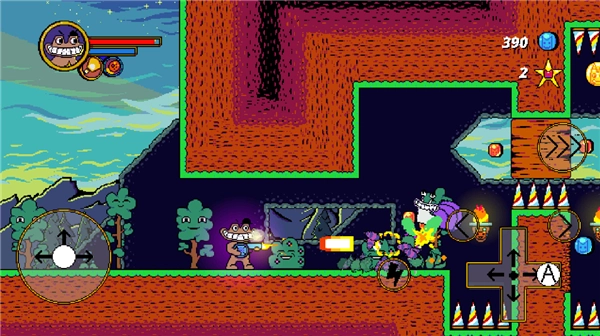 4、四处跳跃,探索疯狂的关卡,射击并躲避敌人。