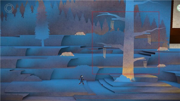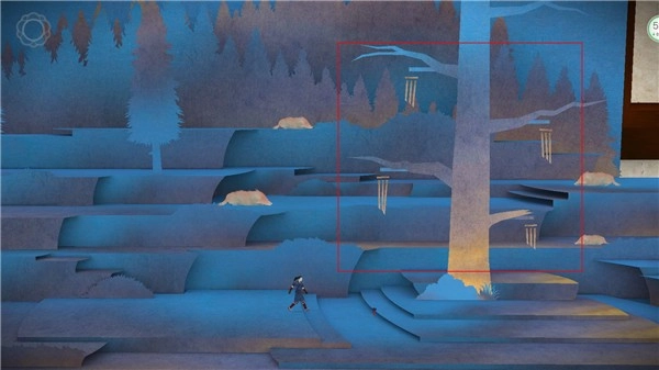 4、这个场景里会有狼出现,我们先不用理会,继续往前走,之后楼梯就会收起来。接着我们再继续向右走,一直走到看到四个风铃的地方,然后把它们拉开。正确的操作顺序是:先拉右下方的,再拉左上方的,接着拉右上方的,最后拉左下方的。