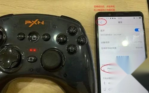 4、连接成功后,可在“已连接的设备”中查看已成功连接的手柄型号为pxn-9628,随后点击左上角返回小鸡模拟器;