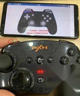 6、操作手柄上的任意按键,手机屏幕的测试界面都会出现对应的按键反馈。若所有按键测试均无异常,可点击左上角返回手柄连接界面。