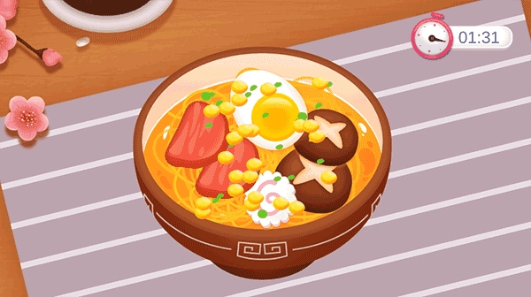 金枪鱼寿司、鳗鱼寿司、寿司卷、拉面……每一道料理都有专属的制作流程,巧妙融入小游戏环节,让宝宝在操作中产生对厨艺的兴趣,培养探索精神。