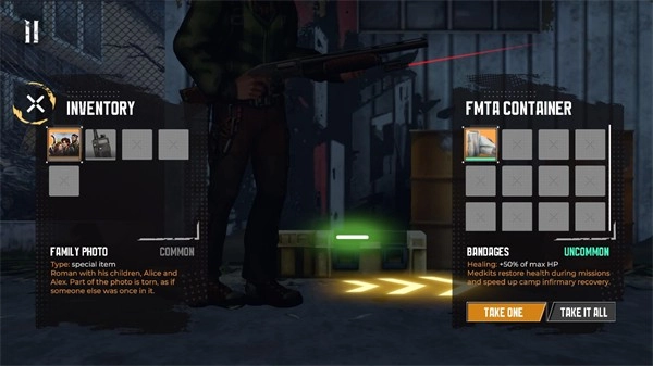 5、当遇到可互动的物品时,能够开展搜索操作,并且可以选择带走其中的部分物品或者全部物品。
