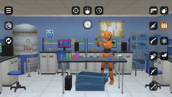 4、玩家能够借助重力控制功能,让房间里的物品与假人处于漂浮状态,还可以运用手雷、燃烧瓶这类带有爆炸范围的杀伤性武器,开展模拟破坏操作。