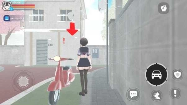4、游戏了操作指引,玩家需操控角色依照提示完成移动,例如跟随红色箭头的指示前往学校场景。