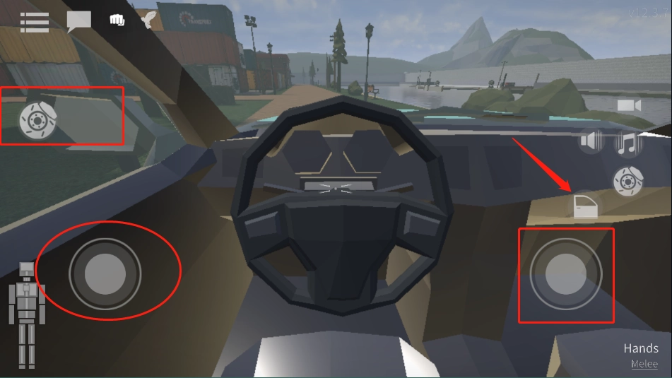 4、我们还能选择开车,就像图里展示的那样,长按小编用正方形圈出的区域,就能进入车内开启赛车奔跑模式(箭头所指方向就是作为主人公的你哦)。