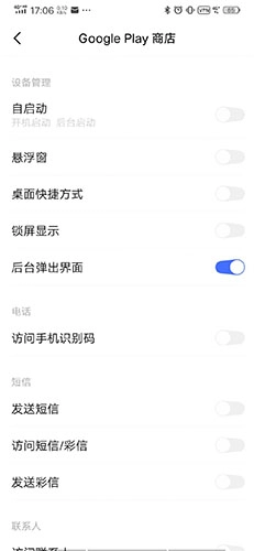 首先,我们需要把荒野乱斗国际服所在的平台,也就是谷歌Play在手机中应用权限解锁,最重要的是勾选上允许“后台弹出界面”,如上图图所示(手机品牌不同可能上图界面会有所差异)。