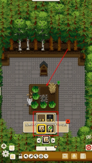 1、在农场场景中,点击底部工具栏的,选择合适的种子种植到田地中,为后续收割做准备。