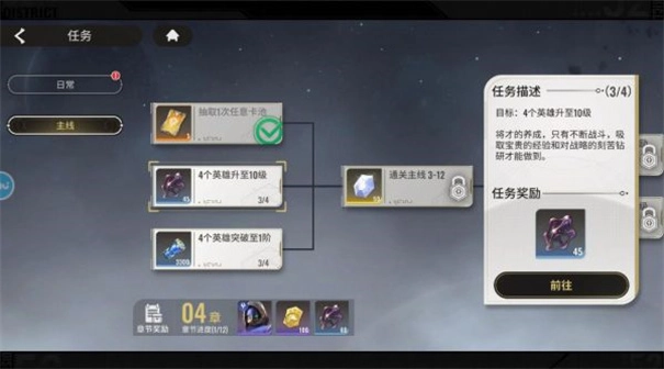 前往“任务”系统,完成主线任务里的抽卡、英雄任务与突破,以及关卡挑战后,同样能够直接领取奖励。