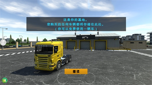 这里是您的专属领地,您所购置的各类载具都会存放在这里,请点击“继续”。