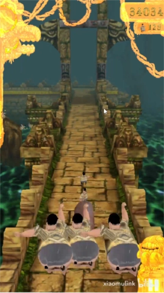 操作逻辑延续了经典神庙逃亡游戏的设计,玩家需操控焖子进行左右移动与跳跃,以此来躲避良子的追捕。