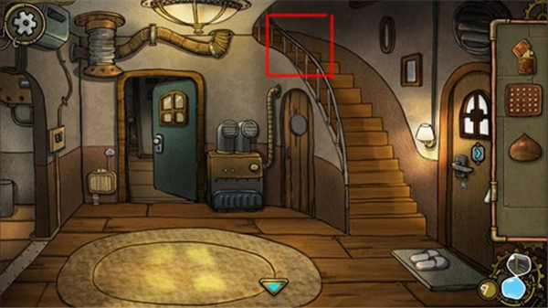 之后我们回到大厅,二楼楼梯只能通往二楼,接着点击右侧的门。