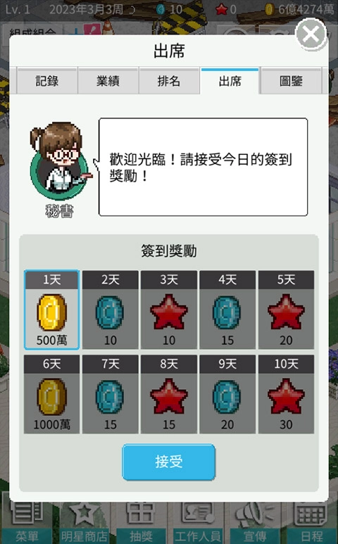 为自己的工作室拟定名号,为所属团队构思称谓,为签约的预备艺人设计艺名;点击醒目的任务标识,即可开启招募流程,来自不同地区的候选者将陆续加入。每位新人都拥有独特的生辰信息、个人偏好与运动特长,形象设定贴近现实;作为他们的专属负责人,你将全程主导艺人们的发展路径。通过制作功能可打造专属专辑,从风格定位、名称创意到造型搭配,均可根据需求灵活调整,创作空间十分广阔。