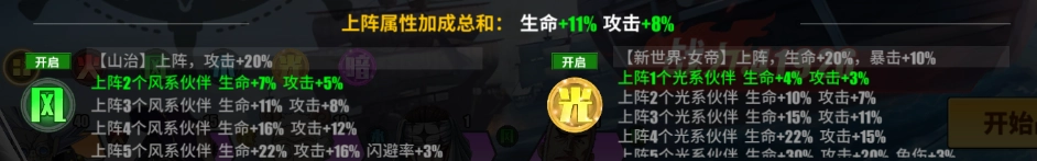在这款游戏里,各个阵营之间存在着相互制约的关系,当队伍中配置了同阵营的角色时,还能触发额外的属性增益。目前游戏里共有水、风、火、光、暗这五种阵营可供选择。