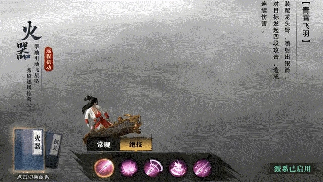 传统弓箭的打造要严格遵守一系列复杂规范,往往要花费大量时间才能完成;而火器的制作流程相对简便,原材料成本也更低,再加上它能攻击更远的范围,很快就在战场上取代了弓箭的地位。当火器被赋予特殊能力后,就像蛰伏已久的猛兽突然发力,瞬间爆发出的攻击力如同狂涛骇浪,几乎无人能挡。