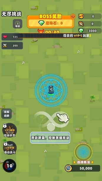 滑动屏幕即可操控英雄移动,灵活闪避敌人的攻击,积累更多经验值来升级,解锁全新的技能。