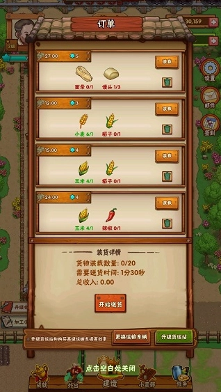 点击门口的订单,里面列出了当前客户的需求,将货车装载完毕之后,便可让外公送货了。