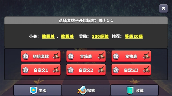 游戏开局时要挑选对应的卡组,这些卡组和游戏内商店里能买到的强化卡牌是对应的。