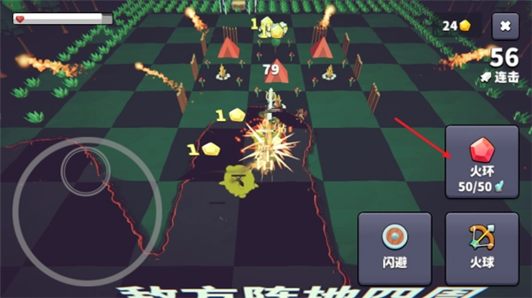 右下角还有闪避和火球技能可以使用。