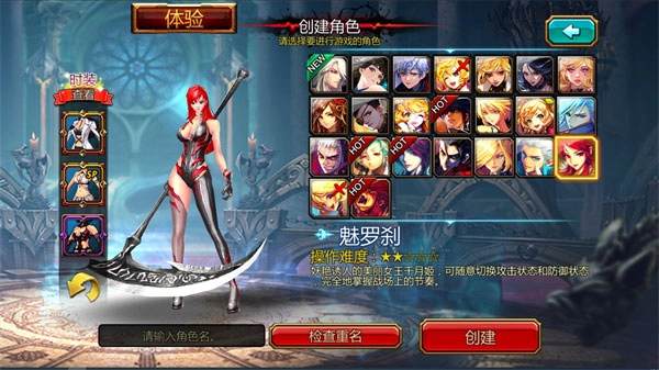 在正式进入游戏前,玩家需要先创建属于自己的角色,点击“创建角色”按钮就能进入相应页面。