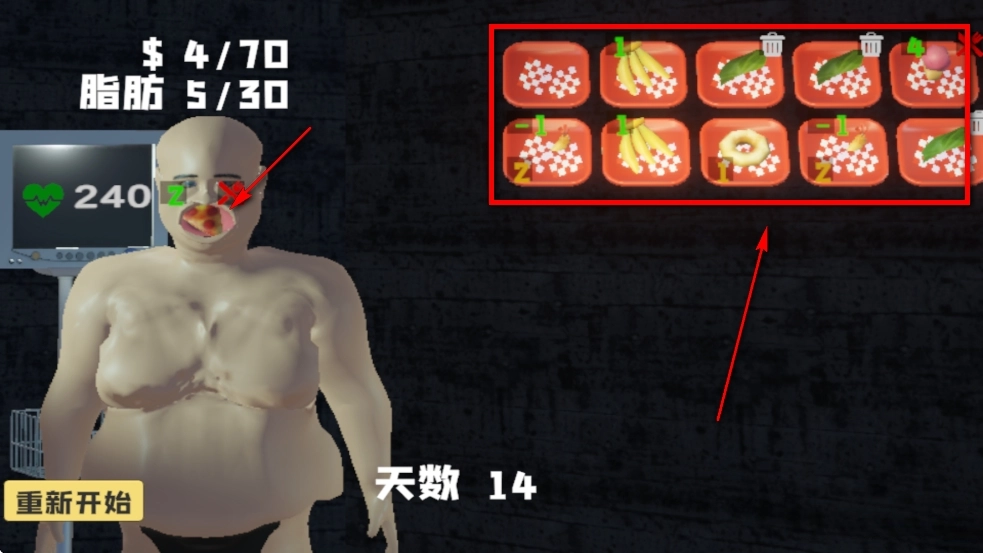 可以用赚到的钱买各种各样的食物,还能通过消耗脂肪来【撑大肚皮】