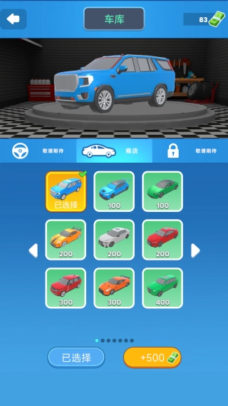 进入车库界面后,可使用积攒的金币解锁新车辆,各类车辆的性能有所不同。