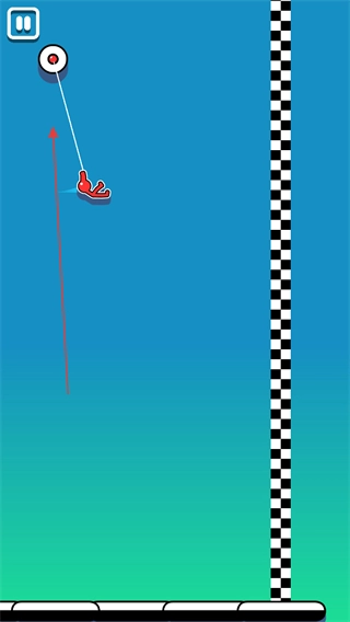 在恰当的时刻松开飞钩,使火柴人朝着右侧的黑白格子终点线飞去。