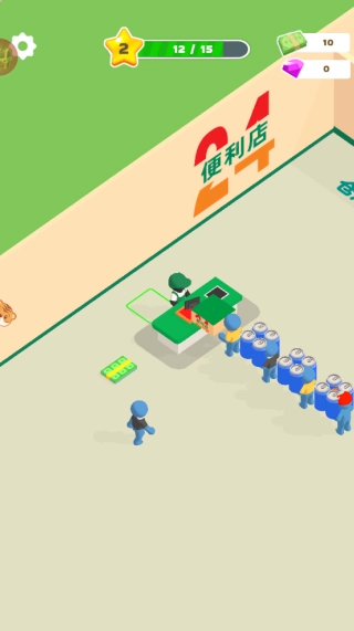 在便利店的收银区,要优先为排队的顾客提供服务,通过快速完成收银流程来获得金币。