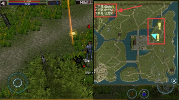 按照地图任务的指引,前往指定的标记区域,把【蜘蛛】和【幼龙】各消灭5只(当前进度均为5/5),完成这两项任务后就能领取奖励,助力提升自身战力。