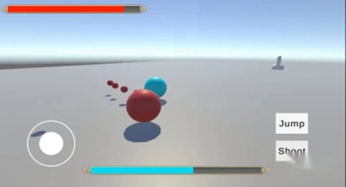 移动操控方式如下:通过滑动屏幕左侧的虚拟摇杆来调整行进方向,点击【Jump】按钮可完成跳跃以越过障碍,点击【Shoot】按钮则能发射能量波。