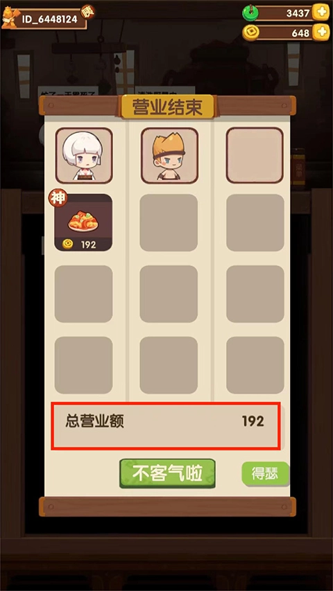 2、游戏侧重于轻松挂起玩法,保证肝脏不肝脏的同时,游戏中客人、商店和厨师的对话都是搞笑搞笑的。