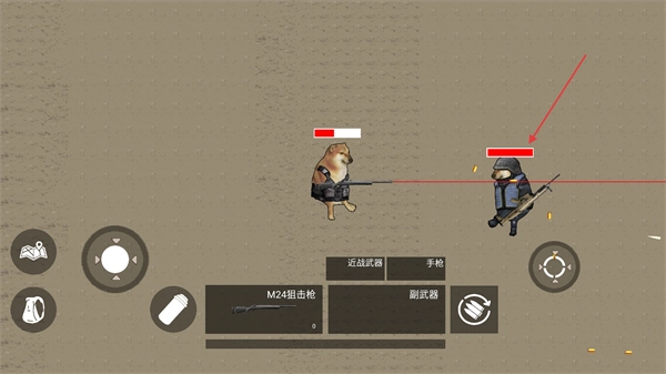 操控小狗使用【M24狙击枪】对准敌方目标,优先攻击头部位置以快速削减敌人生命值。