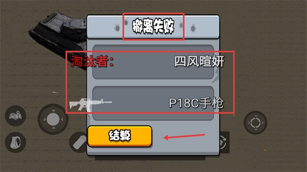 撤离失败后,点击【结算】按钮就能重新进入游戏,通过积累经验来避免被【P18C手枪】淘汰。