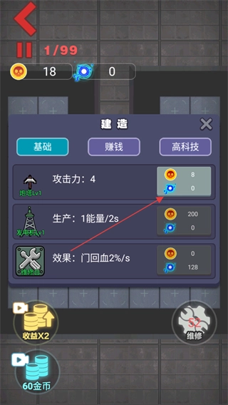 点击房间内的任意空白处,就能建造基础攻击设施,以此抵御噬梦者的进攻。