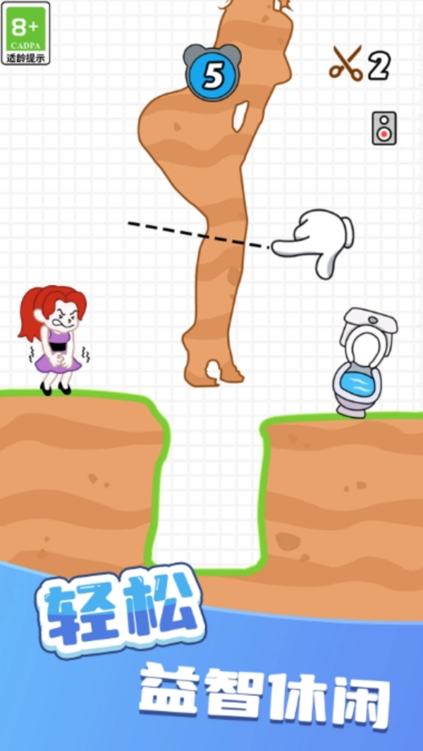 趣味画线上厕所游戏是一款创意满满的休闲闯关小游戏。在游戏里,你要尝试不同的切割方式让物体快速掉落,巧妙地把下方的道路填满,好让角色能顺利走到右边的终点。每一关都得好好规划一下,这样才能轻松地通过所有关卡!
