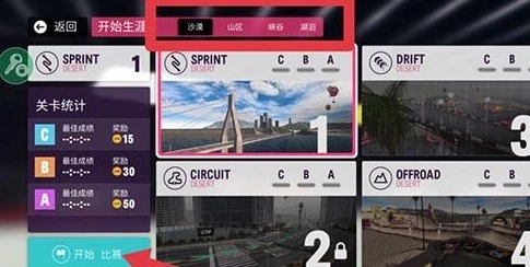 5、可以选择不同的地形,点击开始比赛。