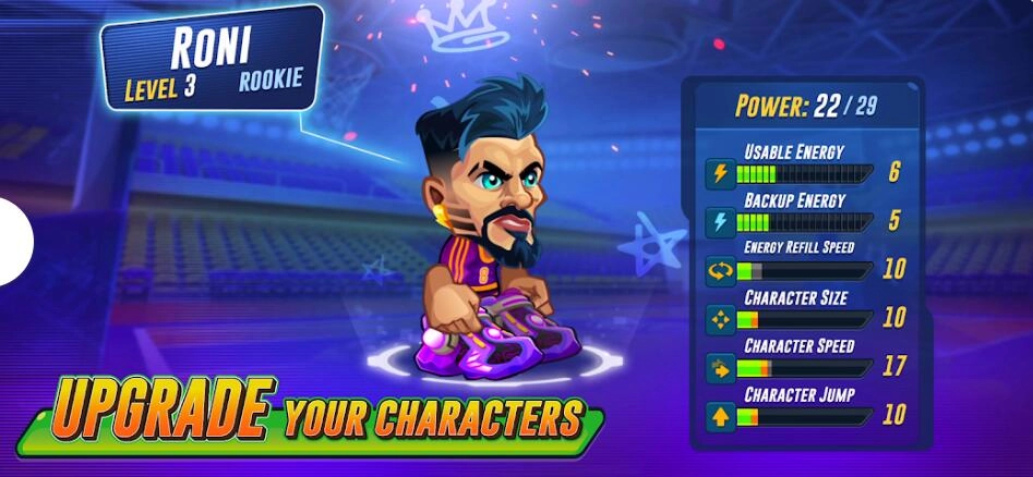3、游戏里有超多充满个性的角色,多样酷炫技能助你尽情驰骋球场,让篮球在指尖灵动跃动。
