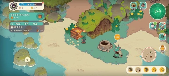 11.梦境崎岖石滩岛砍椰子拿椰子和挖石头。