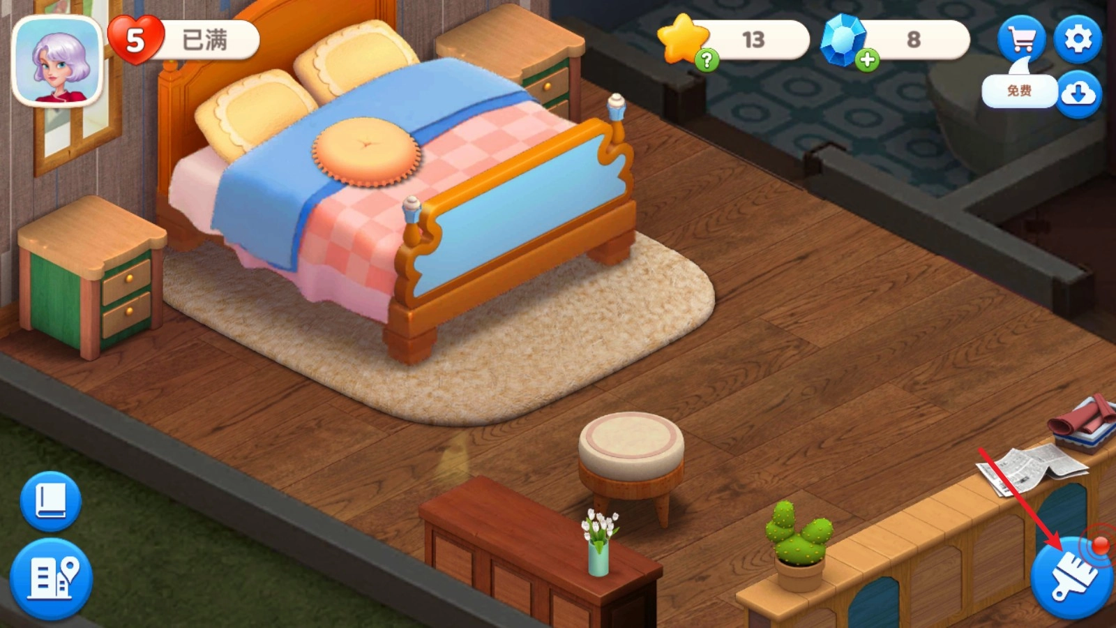 在这里消耗过关获得星星就能够进行房间装修了。