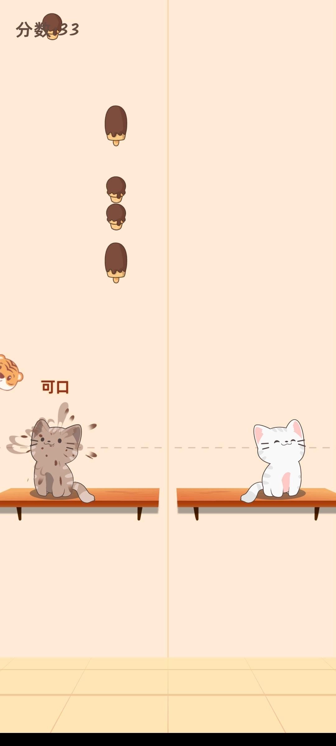3、操控小猫咪接取食物,一旦遗漏游戏就结束。