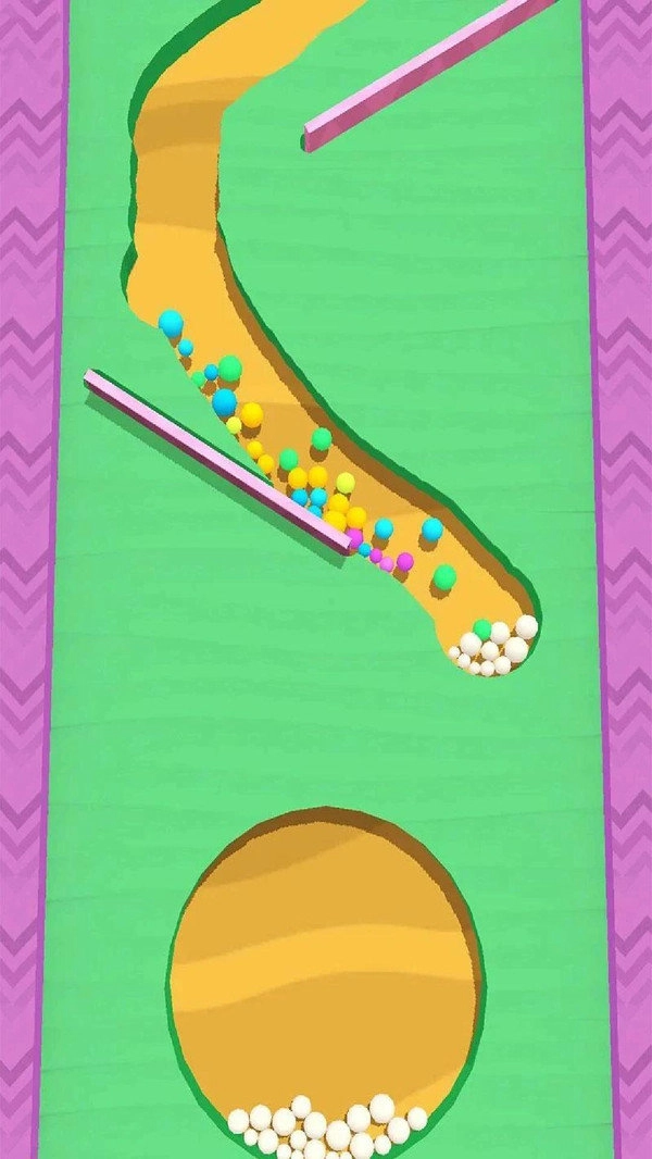 通过滑动手指为球开辟一条路径,避开并撞击障碍物,尽可能收集更多的球。